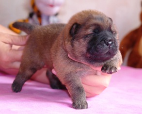 On the 17.10.2009 first puppies out of our Bob were born! The mother of the puppies is cinnamon Zherminal. There are 7 puppies in the litter: 2 cinnamon, 2 blue and 1 black bitches, 2 red dogs.